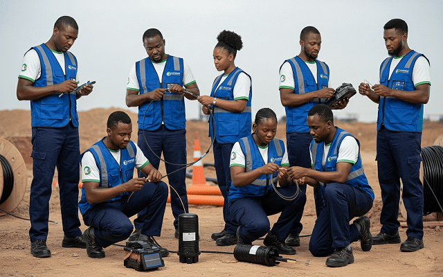- le Déploiement, l’Installation et la Maintenance de réseau de Télécommunication en fibre optique, VSAT, et Boucle Local Radio (BLR).